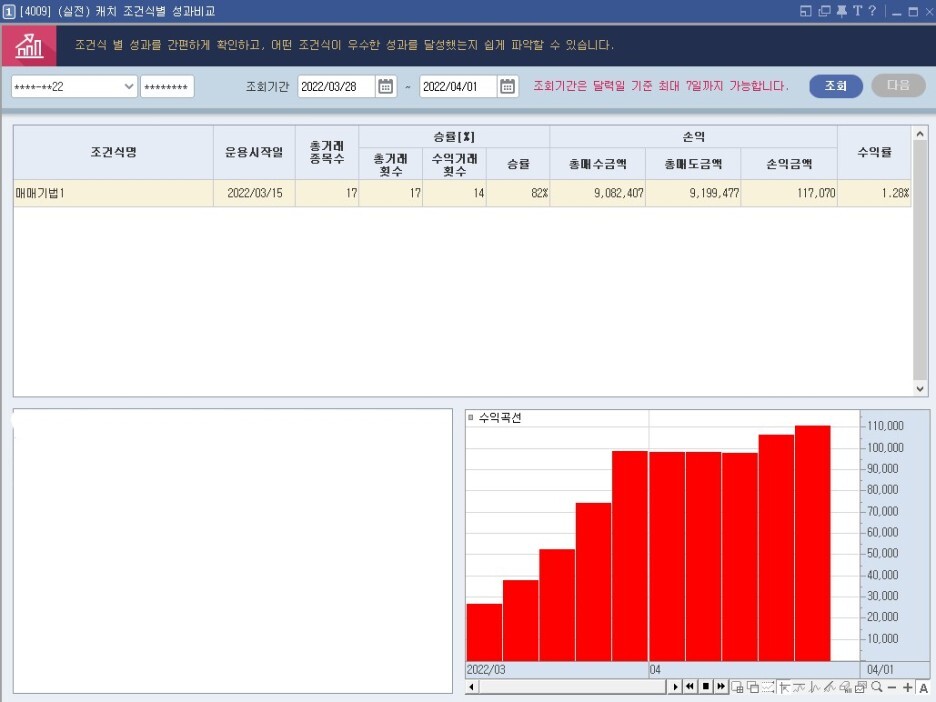 | 키움증권 캐치 자동매매 매매일지 - 2022.3.23 ~ 2022.3.25 (0) | 2022.03.25 |